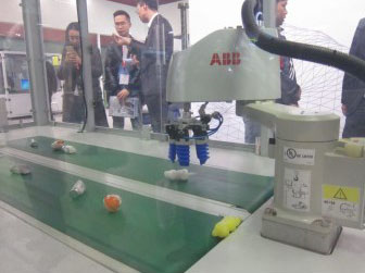 ABB的展览闪光点之一是IRB 910SC(SCARA)智能机器人,配置了全新升级特别制作软性工装夹具,可以轻轻松松爬取多种多样异型产品工件。杨维梁详细介绍道:“这商品能够 把握住不规律样子的物品,像生鸡蛋、疏菜这类非常容易损坏的食品类还可以。”