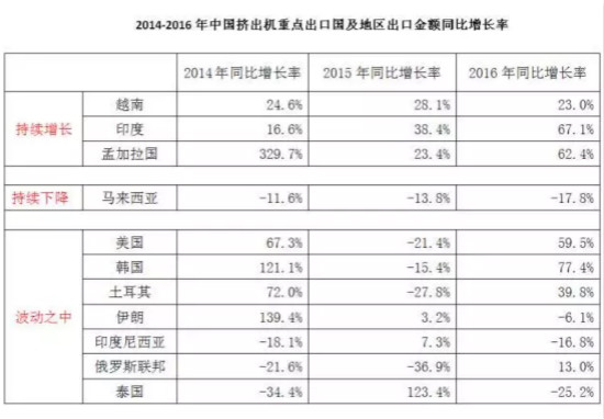 越南地区、印尼、孟加拉持续三年维持不断髙速增长,英国、日本、土尔其2016年出現大幅增长,出口该三国的额度大大的高过2014年。