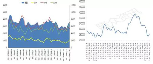 以往大宗商品现货价钱狂跌,公司去产能,因为上一轮价钱跌得十分激烈,公司库存量去化十分充足,2020年6月份公司早已逐渐新一轮补库存量。中下游补库存量需求等要素推动PE库存量显著降低,石油化工库存量包括社会发展库存量均创下近些年最低。库存量下跌是供求端和需求端两层面一同功效。2016年中国PE国产量小幅度增长,PE出口量显著降低,PE再生料供货降低更加显著。因而,2016年PE供货较2015年出現收拢。2016年PE需求不错,PE价钱屡再创新高,中下游贸易公司和终端设备场地积极主动进货,促进库存量下跌。供求端转变促进PE库存量大幅度减少。