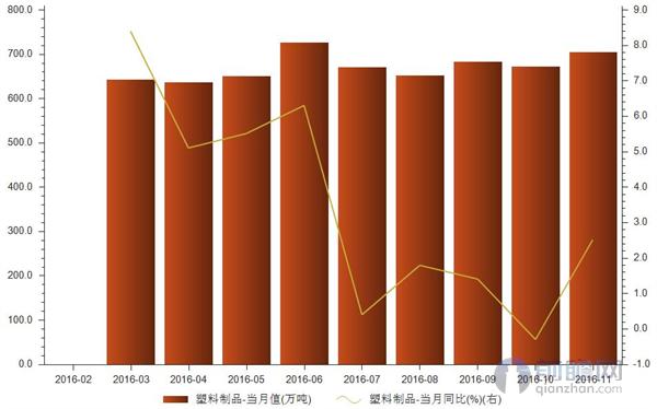 已有人阅读此文 - -据前瞻数据库数据信息显示信息,2016年11月在我国塑料制品产量704.8万吨,环比增涨2.5%。