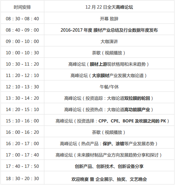 由中智创信息科技(北京市)有限责任公司暨中国塑膜网举办的“2016-2017本年度 膜材行业新春年会”将于2016年12月22日-23日在江阴市三房巷金陵酒店举办。
