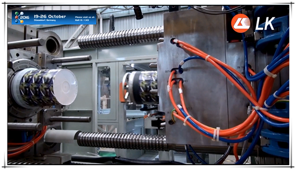 Forza-Ⅲ 450T髙速平稳的机器设备相互配合机械臂,当场制做20L PP塑料桶,该生产流水线还结合了两面包装印刷模内贴标技术性,将中下游包装印刷工作工艺流程立即与注塑工艺流程紧密结合,全部商品周期只需18秒,集中体现力劲Forza系列两板机环保节能、高效率、经济发展、经久耐用的特性特性。