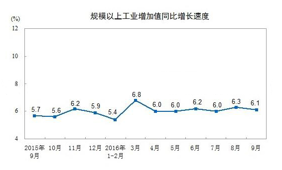 已有人阅读此文 - -据中国统计局全新统计分析显示信息,2016年前三季度,中国规模以上工业增加值同比增长6.0%。
