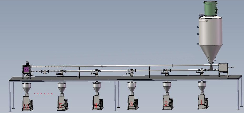 在给挤出机料斗的集中化供料一部分,普遍现象下列的难题: