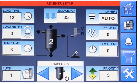 上料系统软件显示屏―Receiver Setup(吸料机设定)