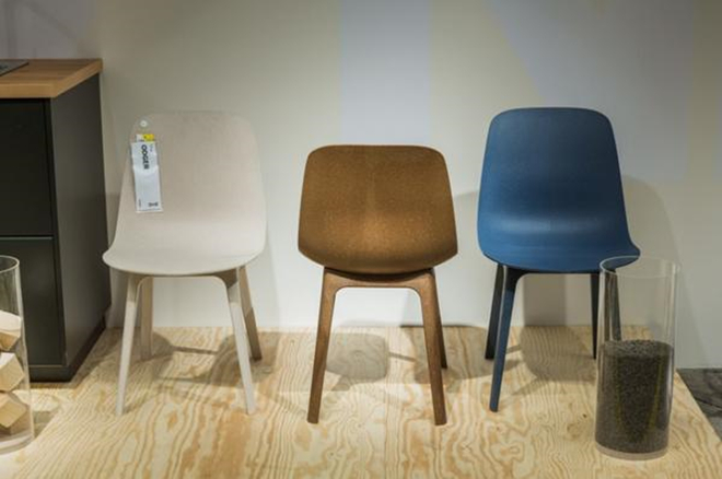 另一个由循环利用原材料制成的商品是 ODGER 桌椅,它是由宜家的室内设计师和德国 Form Us With Love 设计方案小组合作学习进行的。 ODGER 椅由 70%的收购 塑料和30%的能再生木料混和生产制造而成,桌椅绵软、圆滑造型设计令人感悟到一些一般塑料制成的北欧美家具。这桌椅十分经久耐用,拼装起來也非常容易。