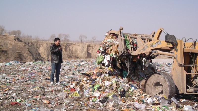 当场:塑料废品堆起来了小山坡