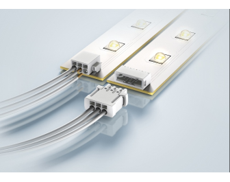 浩亭出示的白色的PCB接线端子排和har-flexicon连接器用以联接性能卓越发亮二极体(LED),规格为2.54mm网格尺寸,选用白色再生塑料,具备耐热、颜色长久平稳的特点。