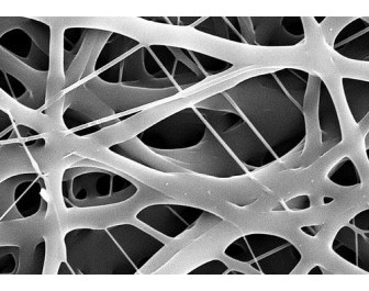 组织工程支架一般 用化学纤维生产制造。过去是用静电纺丝技术,根据电场把无纺布化学纤维融合在一起,造出干细胞粘附的支架,但这类方式大规模生产并不经济发展。