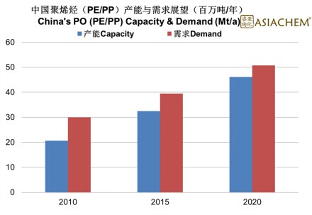 图3 中国聚烯烃(PE/PP)生产能力与要求未来展望