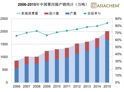 图2 2006-2015年中国聚丙烯产供销统计分析