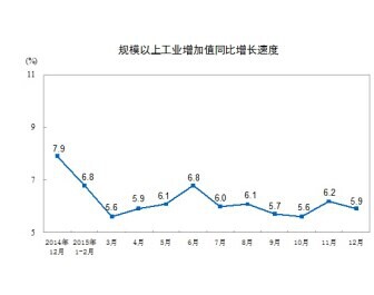 据中国中国统计局全新发布,2015年中国规模以上企业工业总产值比去年提高6.1%。12月本月规模以上企业工业总产值环比具体提高5.9%(比11月份下降0.3个点),同比增长率0.41%。