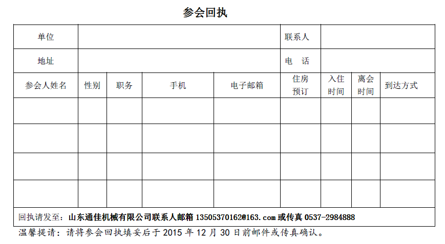 山东通佳机械设备有限公司 报考回执表接受电子邮箱:13505370162@163.com