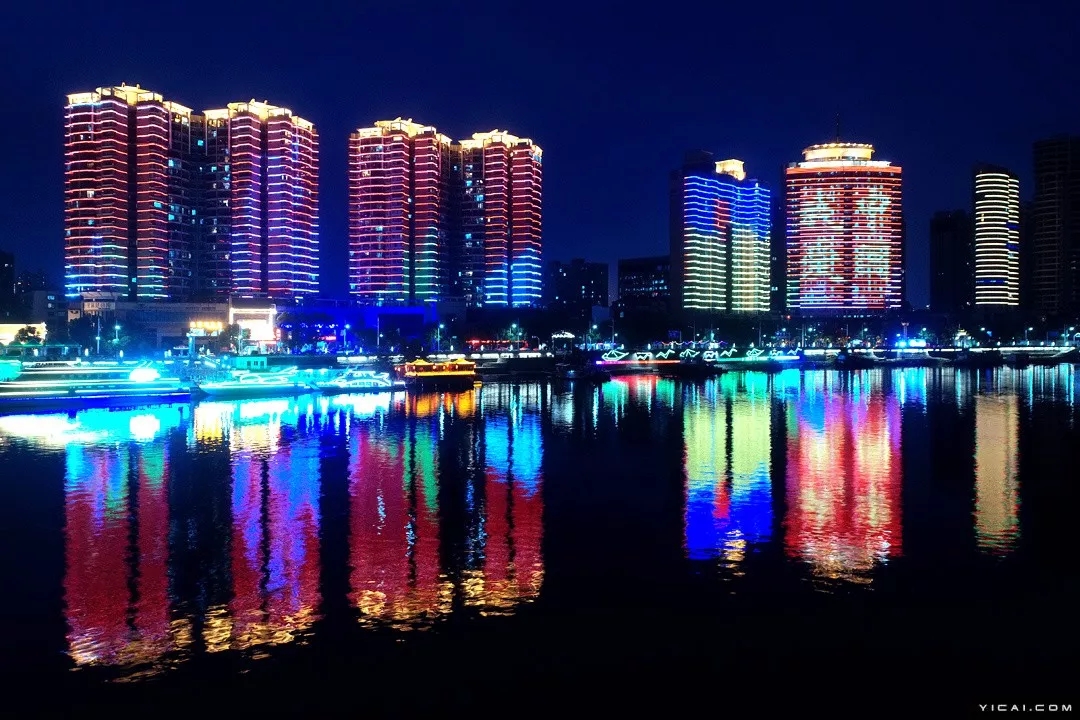 2019年9月23日,武汉,图为在长江两岸的武昌沿江高楼上,鄂爱你中国的大字,在秋夜里格外耀眼夺目。