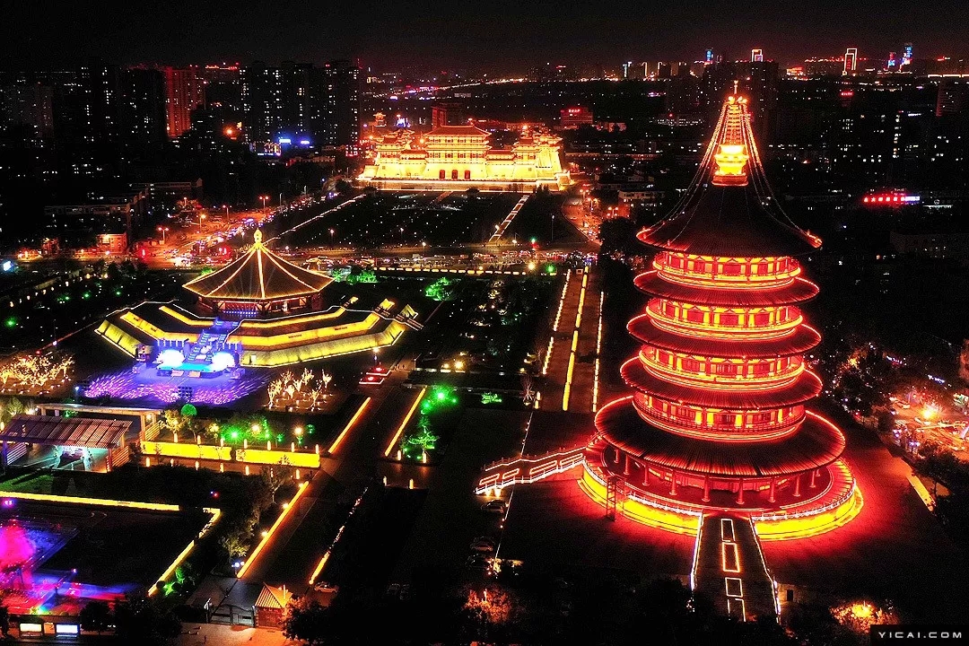 2019年9月24日,河南省洛阳市,夜晚的隋唐洛阳城国家遗址公园在灯光的装饰下美轮美奂。