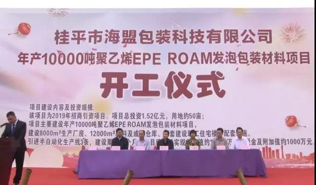 已有人阅读此文 - -11月18日,桂平市海盟包装科技有限公司年产1万吨聚乙烯EPE ROAM发泡包装材料项目在桂平市长安工业区开工。贵港市政协副主席林武、黄汉洋,桂平市政协副主席古雄莲及相关部门、业主单位、施工单位负责人参加开工仪式。