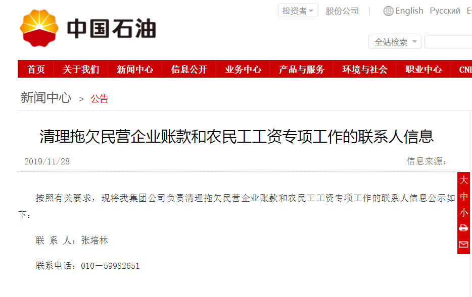 官方!中石油发布一重要电话,事关拖欠民企账款成绩!
