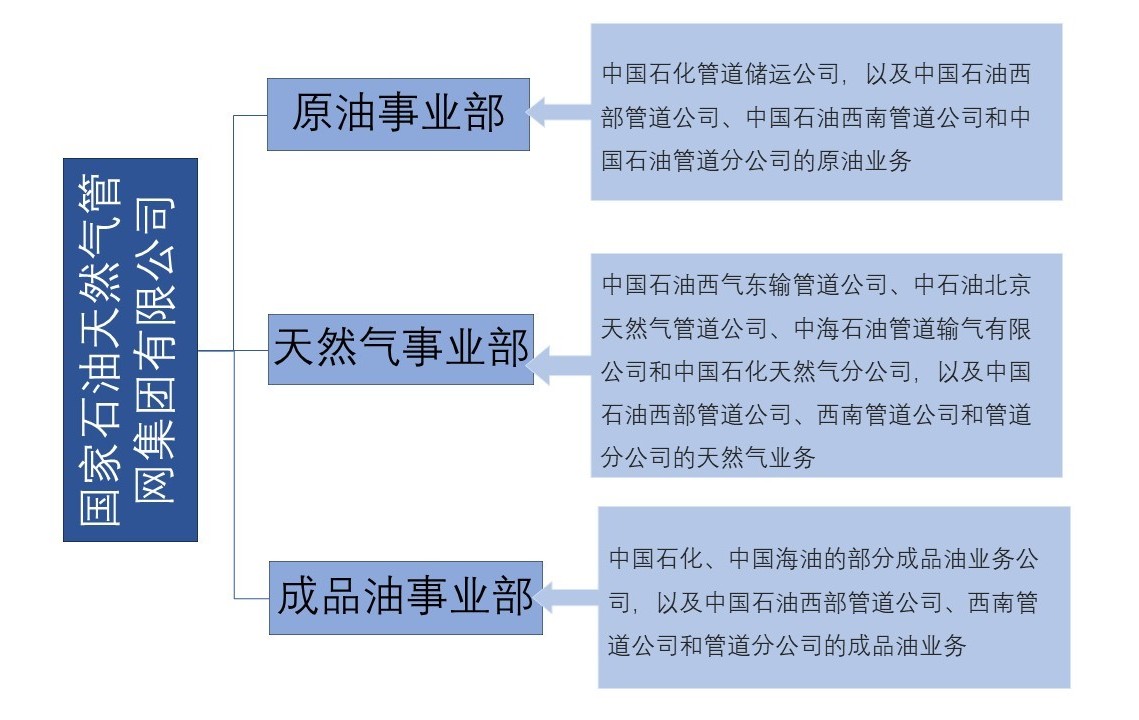 天然气事业部将纳入中国石油西气东输管道公司、中石油北京天然气管道公司、中海石油管道输气有限公司和中国石化天然气分公司,以及中国石油西部管道公司、西南管道公司和管道分公司的天然气业务。