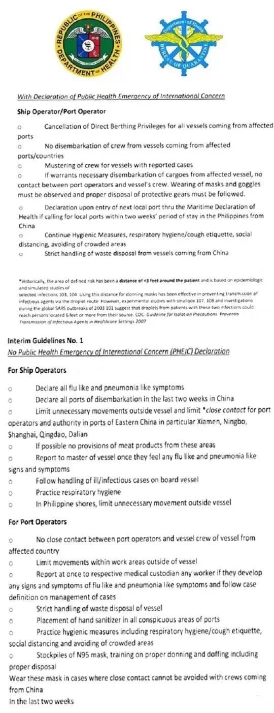 如果两周内停靠过中国的船舶,将在菲律宾靠港的,船员应开具《海事健康证明》,在进入下一个当地港口时进行申报。