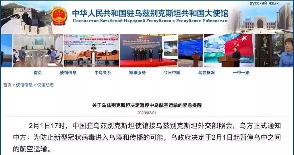 乌兹别克斯坦,2月1日起,暂停乌中之间航空运输。