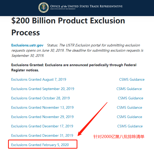 针对2000亿第8批关税豁免通知及清单