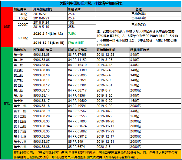 目前关税加征及前19批次豁免清单脉络