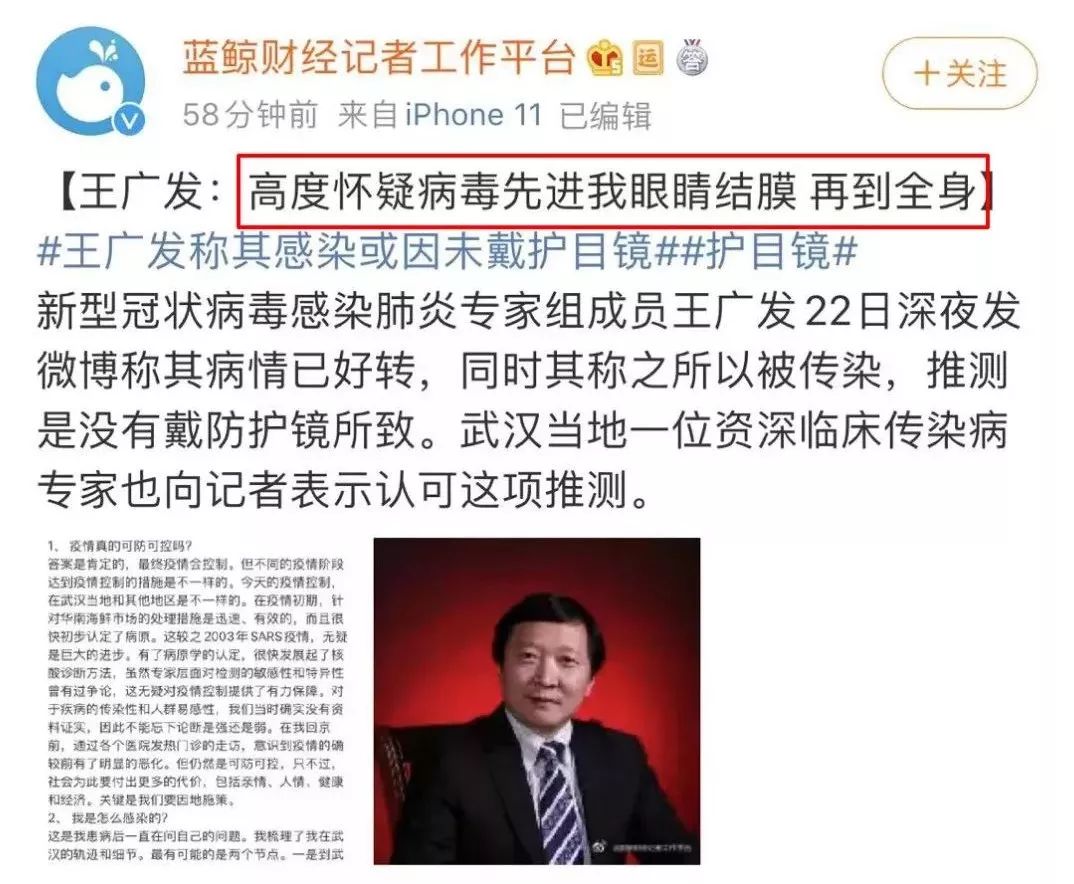 也就是说,近距离接触时,患者或者疑似病人或者没有症状的病毒携带者的口水(飞沫),可能会溅到医护人员的眼珠子上。然后,他们可能就会被传染。