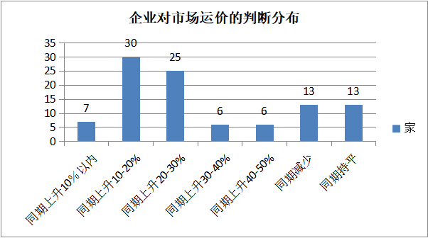 受行业复工复运不利影响,市场运价有上调趋势。被调查企业中,有近7成以上的企业认为市场运价将上涨10%以上,其中,有近4成的企业认为会上涨20%以上,有1成以上的认为会上涨30%以上。