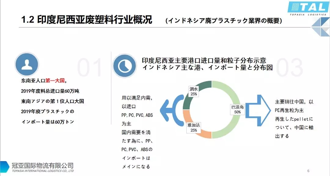印尼人口超过2亿,是东南亚第一大人口国。进口废塑料主要港口是雅加达,泗水,巴淡岛;2019年废料总进口量约60万吨。