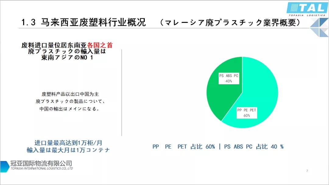 目前马来西亚废塑料进口量是东南亚最大的。据海关统计每月有10000个集装箱进口。