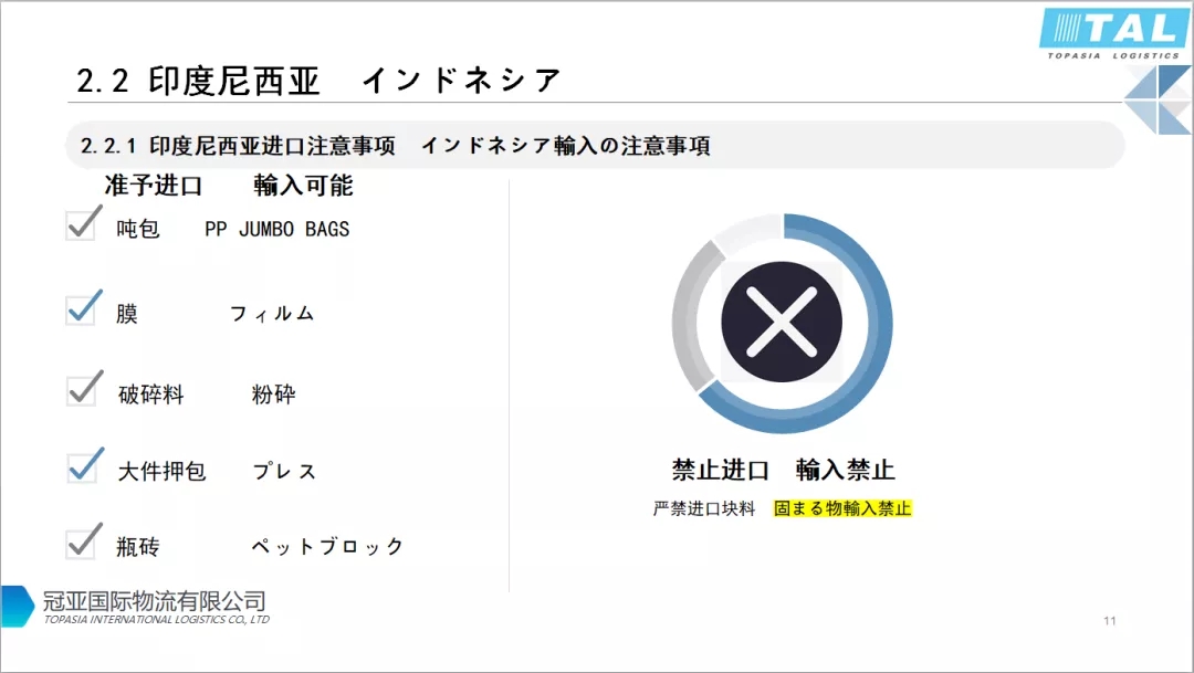 印度尼西亚块料不让进, 吨包,95膜,破碎料,大件押包,瓶砖,可以进口。2019年进口清关都很顺畅,特别是巴淡免税岛,清关成本只有300美金一柜,大量PE膜从世界各地发往巴淡港,最高峰一个月巴淡岛进口了5000柜左右。
