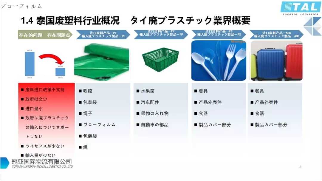 由于本国的产废资源丰富,所以进口废料加工后大部分以出口为主,由于泰国政府并不支持海外废料进口,所以以后会更艰难。