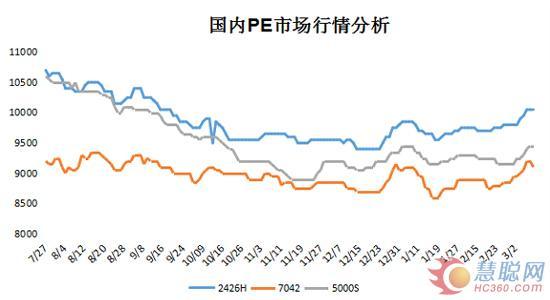 已有人阅读此文 - -3月9日PE市场开始涨后企稳,局部走跌。随着近期价格的日益走高,下游工厂抵触情绪渐浓,来自需求方面的阻力不断凸显,从而导致成交难现转机,贸易商炒作心态从亢奋逐渐向谨慎转变。国内主流价格:LDPE:9950-10500元/吨,LLDPE:9250-10000元/吨,HDPE:拉丝料9600-9800元/吨。