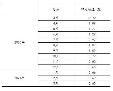 根据季节调整模型自动修正结果,对2020年3月至2021年2月份规模以上工业增加值环比增速进行修订。修订结果及2021年3月份环比数据如下: