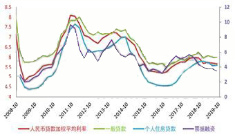央行公布的数据显示,3 季度金融机构人民币贷款加权平均利率下行4bp 至 5.62%, 一般贷款加权平均利率上行 2bp 至 5.96%,仅票据融资利率下行明显,从 2 季度的 3.64% 下行至 3.33%,实体经济融资成本下行幅度有限。