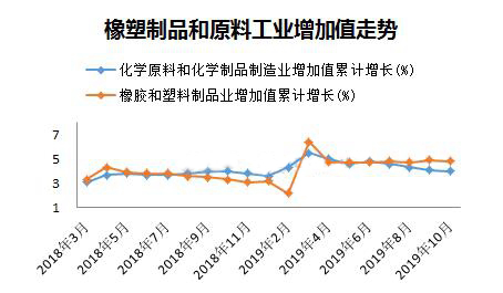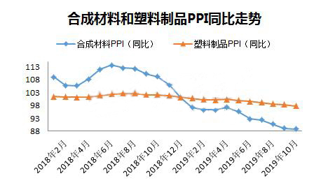 10月份,化学原料和化学品制造业增加值同比增长3%,橡胶和塑料制品业增加值同比增长3.9%,显然下游制品业增速还是快于上游原料,两者增速差连续三个月收窄,源于10月份制品业下降速度快于原料。去年10月份PE、PP等塑料原料价格揭开下滑序幕,橡塑制品的增速明显低于原料,总体看随着原料端价格下跌,终端产品成本降低,从塑料制品增长角度看制品行业目前形势略好于去年。