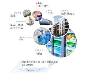 按终端应用领域划分,欧洲包装行业对塑料的需求量最大,占39.9%,其次为建筑行业,占19.8%。
