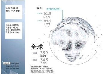 已有人阅读此文 - -根据全球领先的泛欧洲协会——欧洲塑料协会(PlasticsEurope)发布的《塑料——2019年事实与数据》报告统计,2018年全球塑料产量达3.6亿吨;其中,欧洲的塑料产量为6180万吨,与2017年的6440万吨相比有所下降。