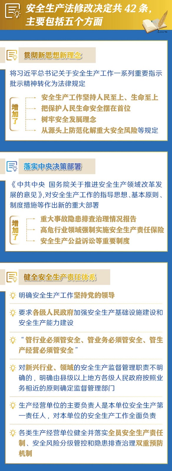 会上,应急管理部副部长宋元明介绍,6月10日,全国人大常委会表决通过了关于修改《中华人民共和国安全生产法》的决定,并将于2021年9月1日起施行。
