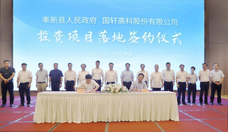 奉新县委副书记、县政府县长提名人选喻军,江西国轩新能源科技有限公司董事长黄章喜代表双方签约