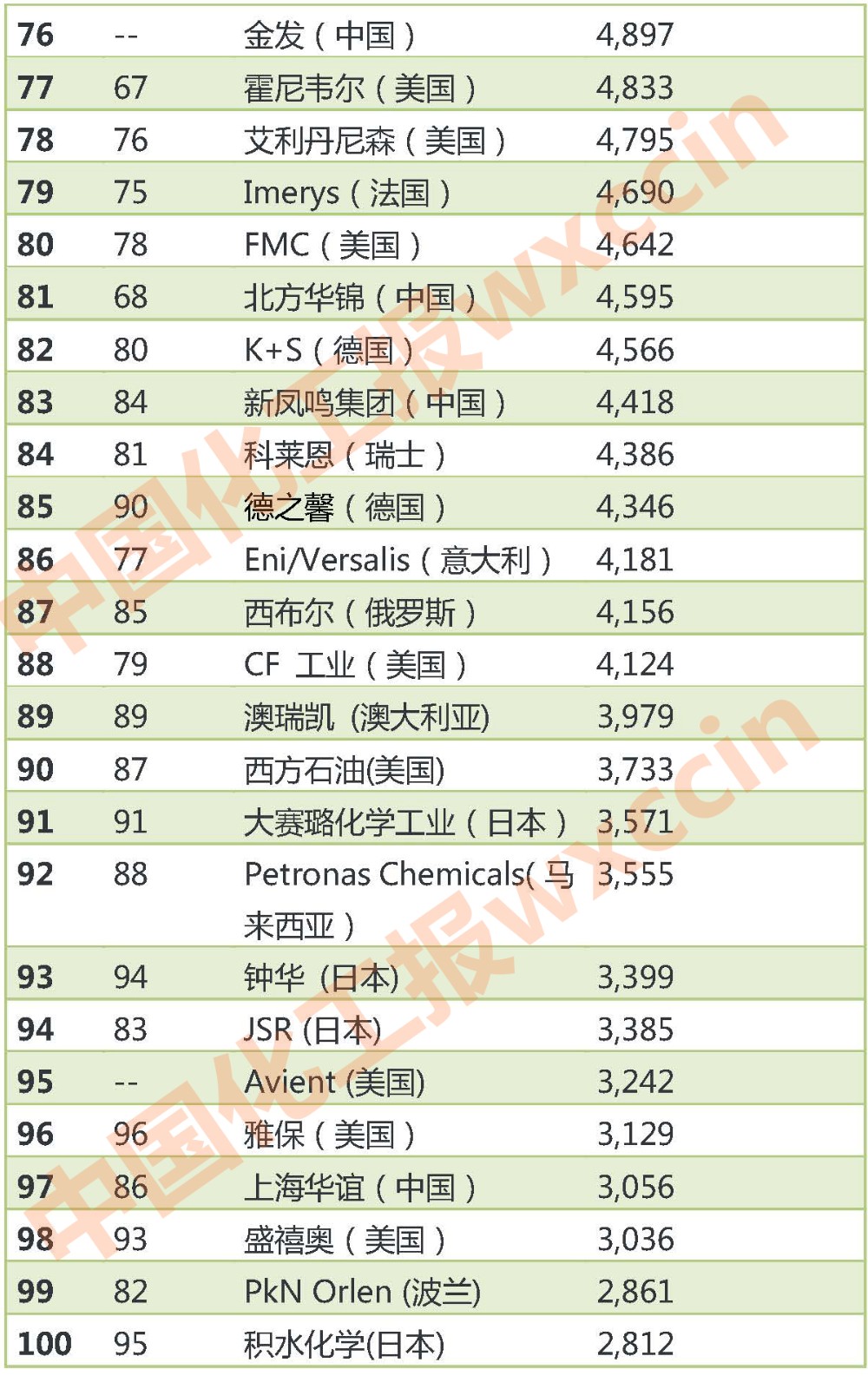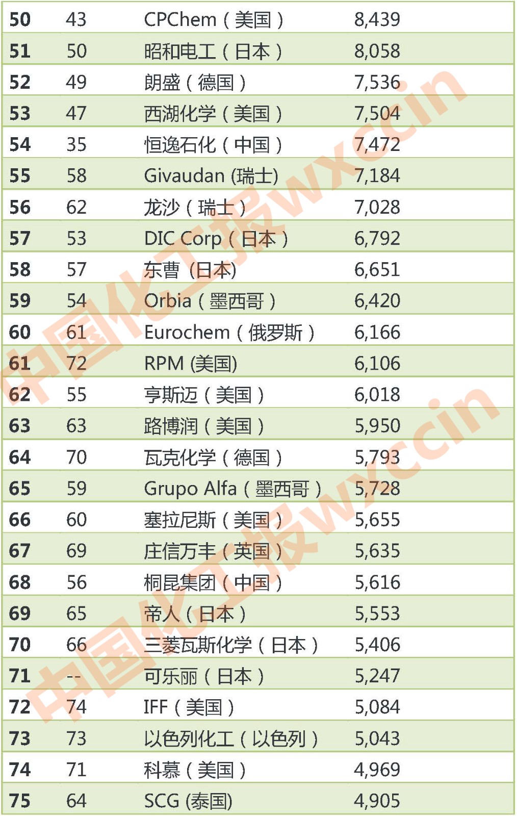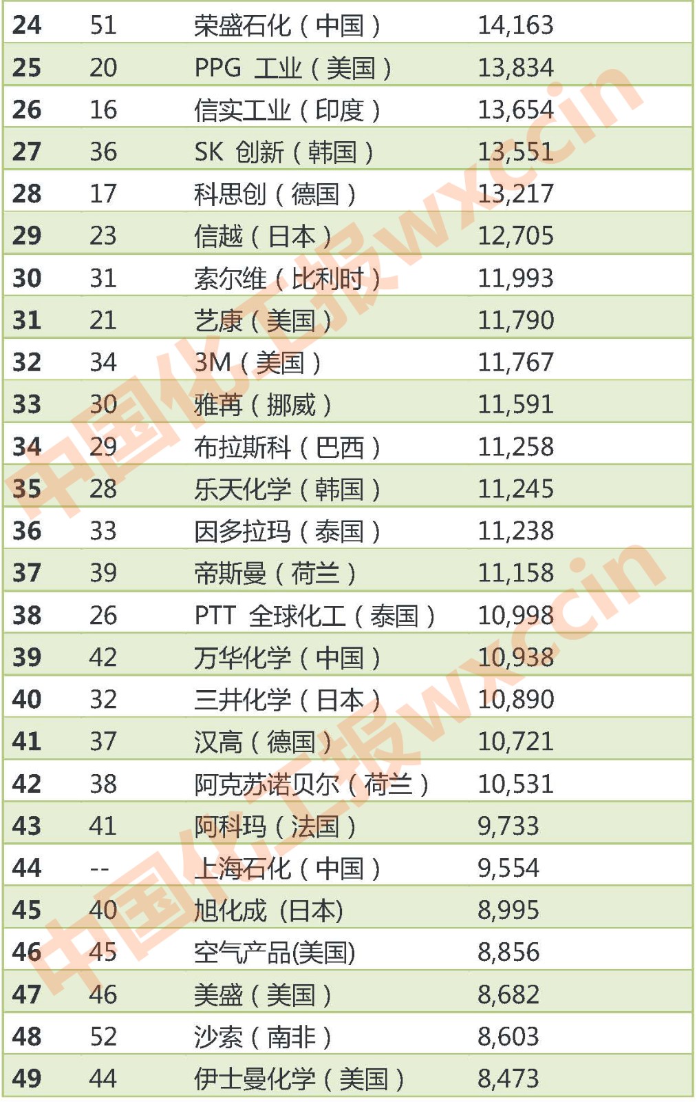 最新全球化工公司十亿美元俱乐部排名出炉