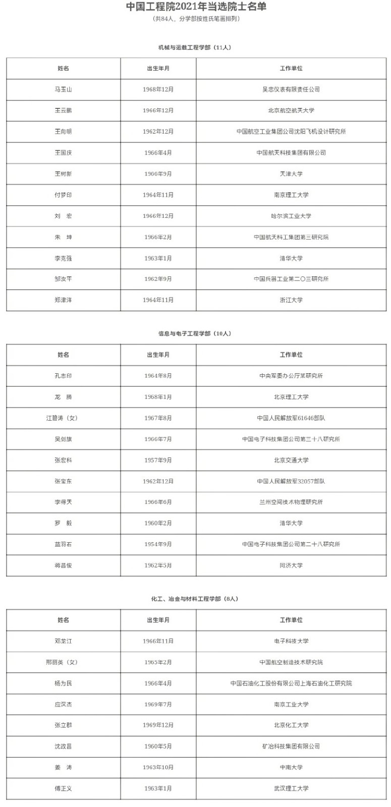 已有人阅读此文 - -11月18日,中国工程院公布了2021年院士增选结果,共选举产生84位中国工程院院士和20位中国工程院外籍院士。