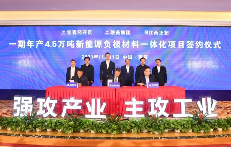 据介绍联美集团一期年产4.5万吨新能源负极材料一体化项目是联美集团和江西正拓新能源科技股份有限公司强强联合的结晶。联美集团一期计划投资10亿元,改造扩建江西正拓现有的锂离子电池负极材料设备及设施,完善2.9万吨石墨化生产线,迅速将新能源负极材料产能提升至4.5万吨/年。