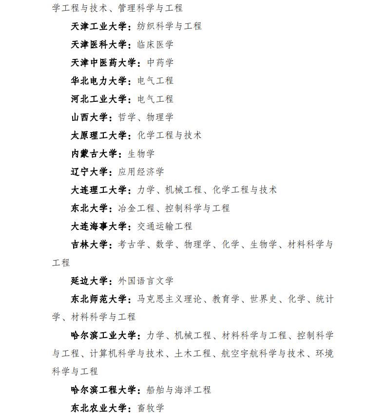 建设学科中数学、物理、化学、生物学等基础学科布局59个、工程类学科180个、哲学社会科学学科92个。北京大学、清华大学自主建设的学科自行公布。