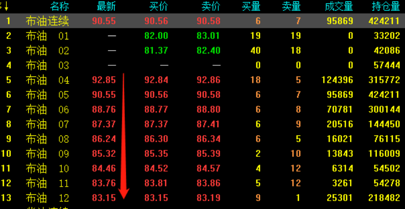 从交易结构上看,布伦特原油期货的近月和远月价格比较来看,呈现出明显的贴水结构。就是说,离现在越远的月份,价格比现在的便宜。比如,最近的合约价格是4月份合约,报价是92.85美元,而今年12月份的合约,报价为83.15美元,时间越拉长,价格反而不如现在。