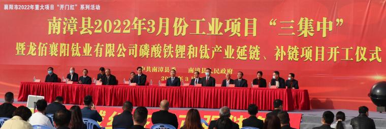 已有人阅读此文 - -3月7日上午,湖北省南漳县举行2022年3月份工业项目“三集中”暨龙佰襄阳钛业有限公司磷酸铁锂和钛产业延链、补链项目开工仪式。此次活动集中签约、开工、投产项目29个,合计投资总额66.89亿元,奋力冲刺首季“开门红”。