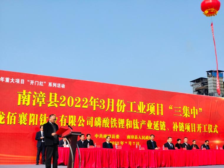 南漳县委副书记、县长陈栋在致辞中指出,此次举行的3月份工业项目三集中暨龙佰襄阳钛业磷酸铁锂和钛产业延链、补链项目开工仪式,表明了县委、县政府奋力夺取一季度工业经济“开门红”的信心、决心,对促进我县今年的工业发展具有重大意义。此举必将对南漳县优化产业结构,推动产业升级,构建产业生态,夺取“开门红”、再续“新精彩”产生深远影响,并提供强劲的项目支撑。