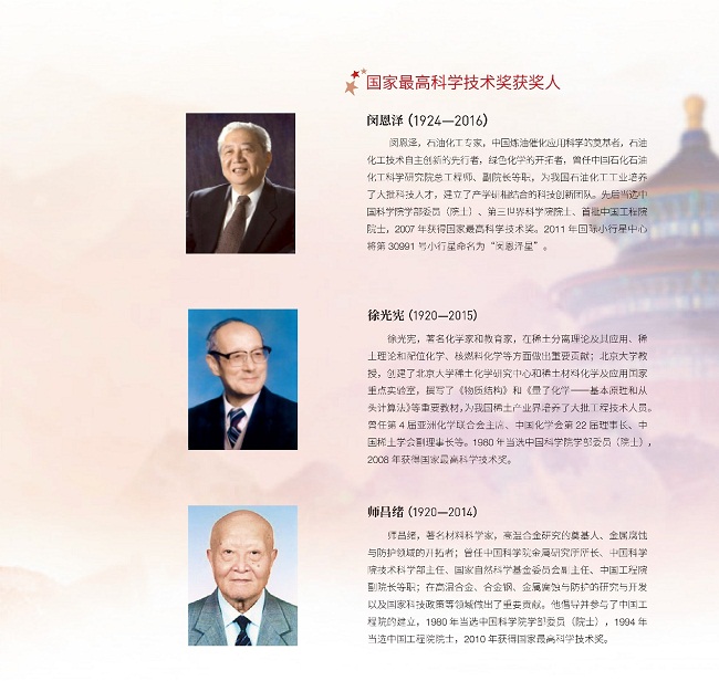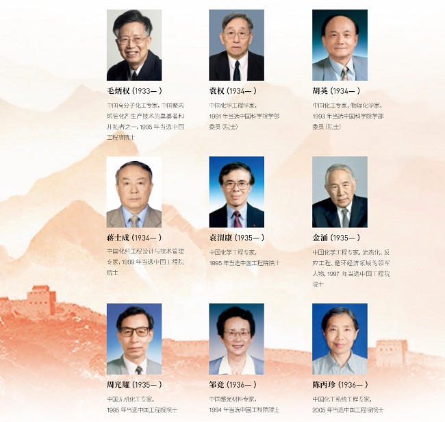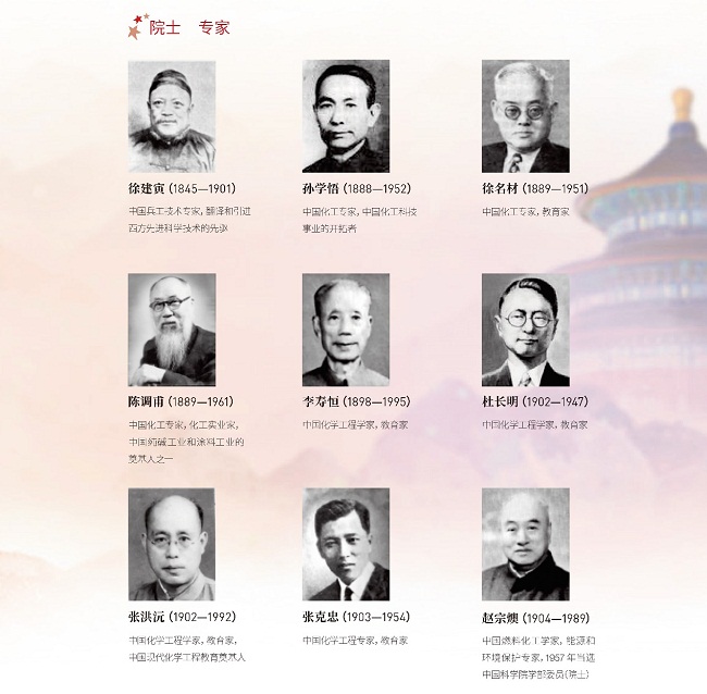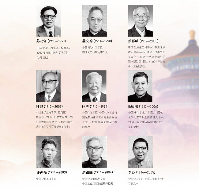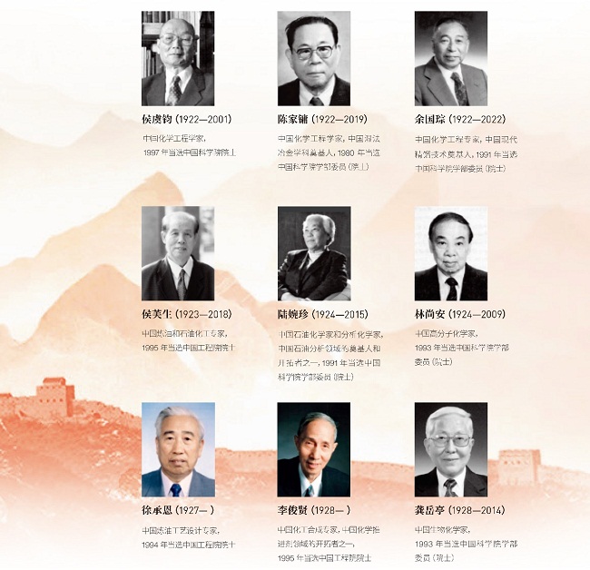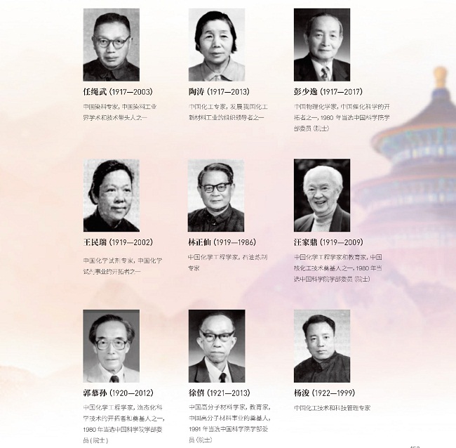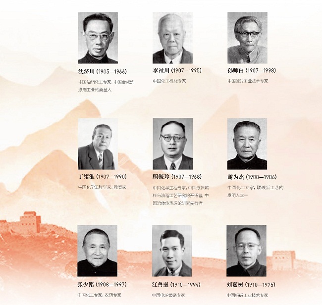 他们中,有化工先驱范旭东、侯德榜、吴蕴初,有国家最高科学技术奖获得者闵恩泽、徐光宪、师昌绪、张存浩、屠呦呦,有时代楷模陈俊武,以及徐建寅、孙学悟等专家、院士。