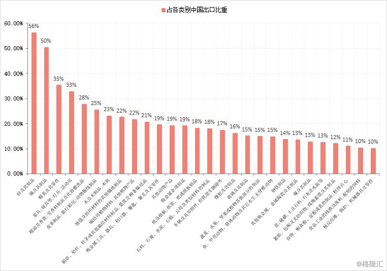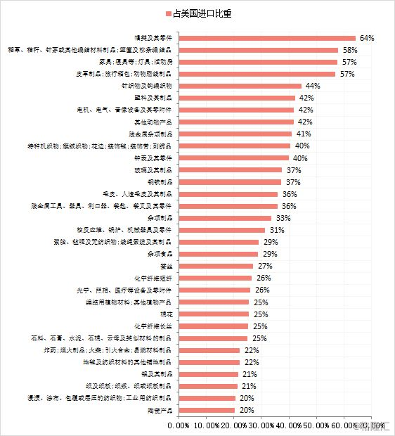 锌、锡以及产品和鞋品、家具等劳动密集商品出口受影响水平高。从占有率看来,锌以及产品、锡以及产品、帽类以及零件,家具、床具、照明灯具等尽管额度比不上电器设备等商品类型高,可是占17年该类型中国所有出口比例更大,受影响水平更加深入。而在其中,帽类以及零件和家具、床具等不但被加增关税的额度较高,且占该领域所有出口比例很大,各自做到35%和32.8%。