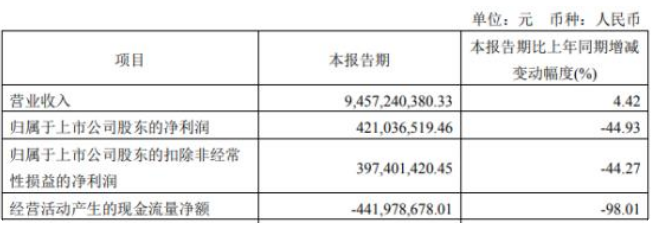 报告期内经营活动产生的现金流量净额为-4.41亿元,截至本报告期末总资产521.4亿元。